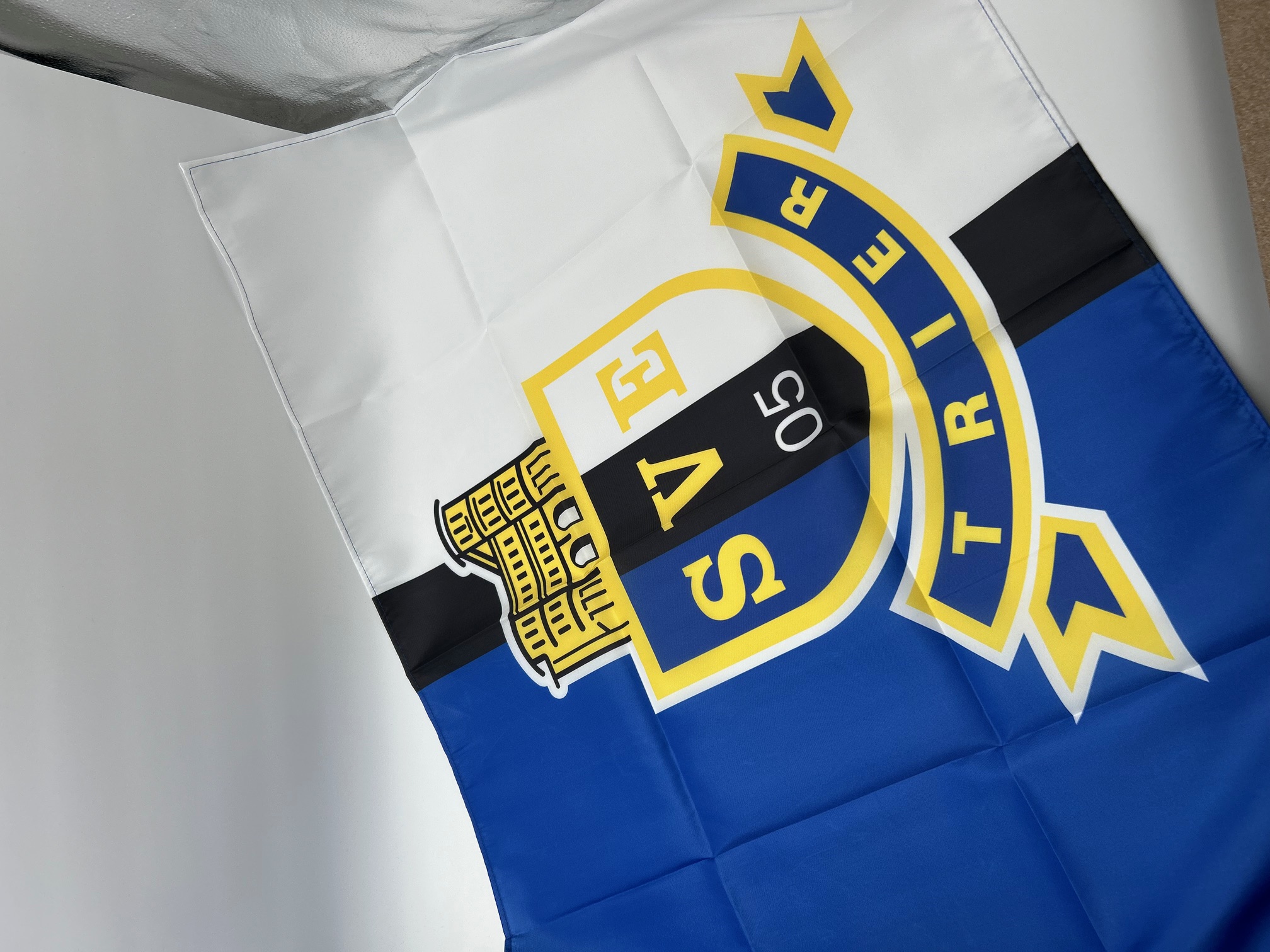 Eintracht Trier Fan Fahne. Größe: 100*70cm mit einem Hohlsaum 5cm links.
